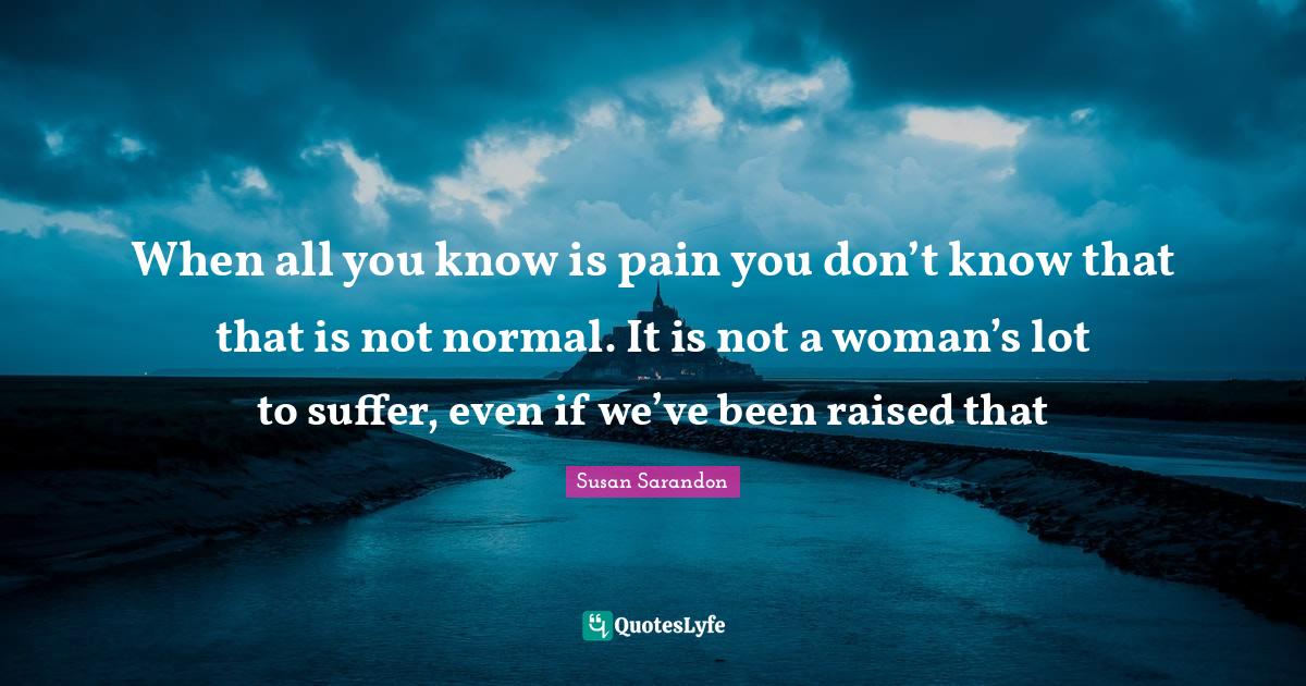 It is not a woman's lot to suffer, even if we've been raised that way.